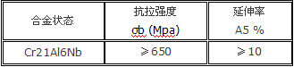 Cr21Al6Nb 退火狀態(tài),在常溫下合金的機械性能: