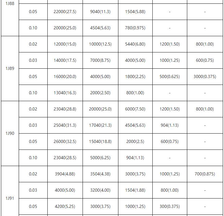 400 Hz下峰值磁導率(mH / m),不小于 |
