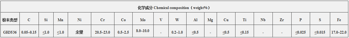 高溫合金粉末:GH4169(In718)、GH3625(In625)、GH3536、GH5188、GH4099、GH3230、GH1131等;