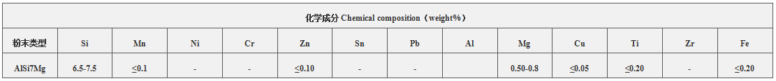 鋁合金粉末:AlSi10Mg、AlSi7Mg等;