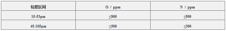 粉末特性:粉末特性:批次穩(wěn)定性高、球形度好、氧含量低、粒度分布均勻,具有良好的流動(dòng)性以及較高的松裝密度和振實(shí)密度。